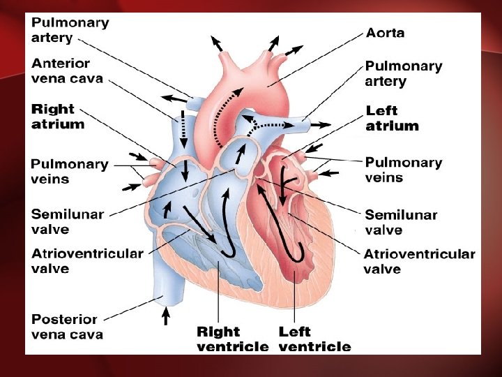 Circuits • Pulmonary circuit –The blood pathway between the right side of the heart, to the lungs, and back to the left side of the heart. • Systemic circuit –The pathway between the left and right sides of the heart.