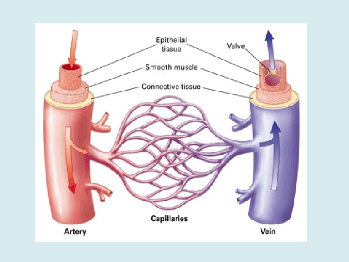 Vessels • 1. Arteries – Carry blood rich in oxygen away from the heart. • 2. Veins – Carry blood poor in oxygen back to the heart. • 3. Capillaries – Materials are exchanged to and from the cells by diffusion. Only 1 cell thick. If we connected all of our vessels end to end…. we could go around the world almost 3 times!!!