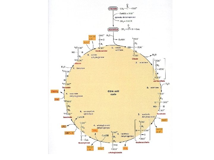 The Citric acid cycle Overall reaction 3 NAD+ + FAD + GDP + Pi + acetyl-Co. A 3 NADH + FADH + GTP + Co. A + 2 CO 2
