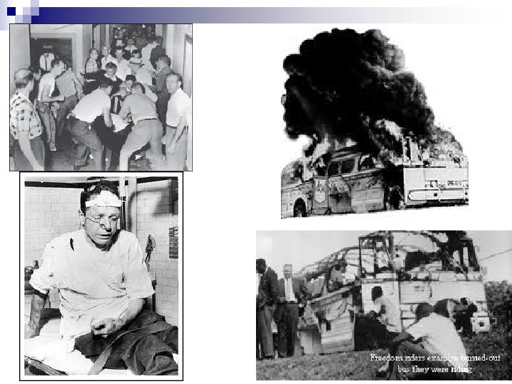 The Civil Rights Movement 1954 – 1968 Section 2 : Challenging Segregation The Freedom-Riders § § § Bus travel in South was still segregated although courts had outlawed segregation. Freedom Riders – groups of white/African American college student volunteers took a bus trip to protest this practice. Eugene “Bull” Connor – Birmingham , AL public official, did not protect civil rights protesters from being beaten. . (Mother’s Day)