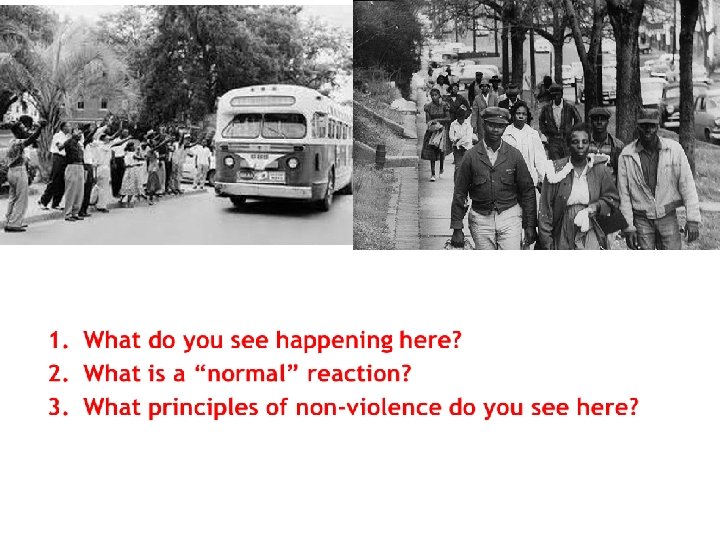 1. What do you see happening here? 2. What is a “normal” reaction? 3. What principles of non -violence do you see here?
