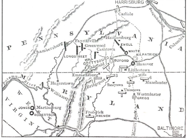 75, 000 Confederates in Pennsylvania! n n The first shots are fired by Illinois Cavalry when a Southern raiding party was discovered coming into Gettysburg looking for shoes. This was the only major battle fought in the North
