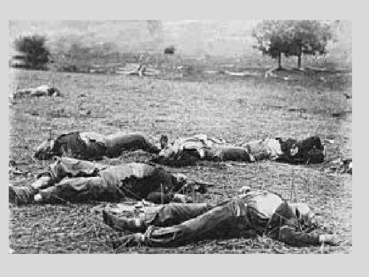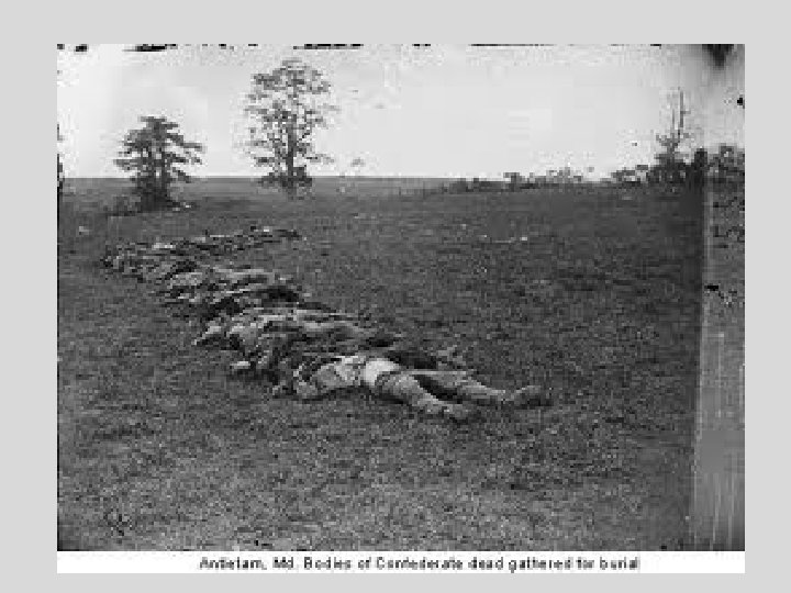 Battle of Antietam UNION: • 2, 108 soldiers KIA 9, 549 soldiers WIA CONFEDERATE: • 2, 700 soldiers KIA 9, 029 soldiers WIA TOTAL: • 4, 808 KIA 18, 578 WIA