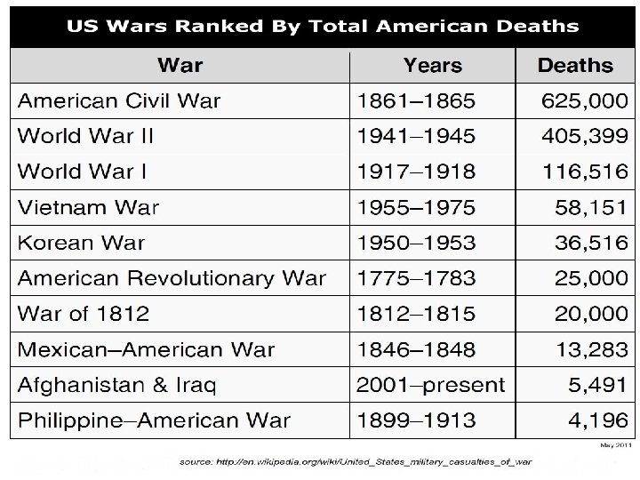 Civil War Review #4: TRUE or FALSE Nearly as many Americans died during the Civil War as in all other wars that America has been involved with combined. TRUE.