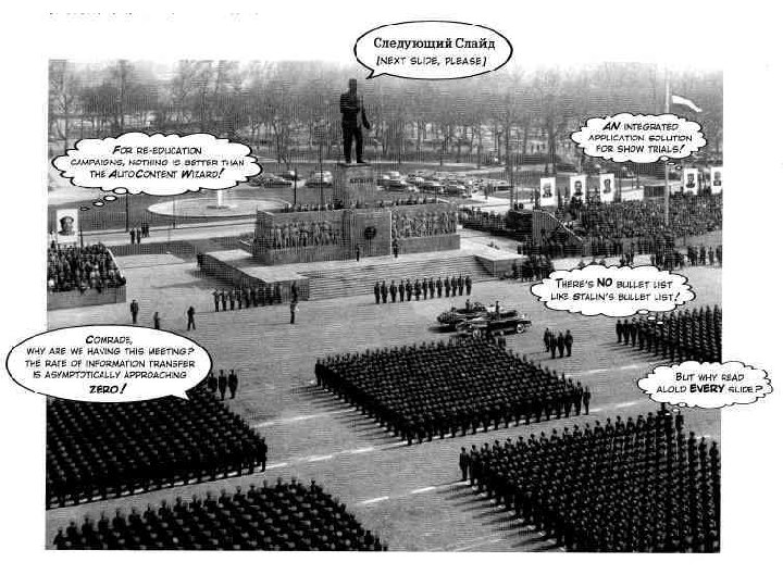 Better Presentations • Make content relevant, high quality and with high standards of integrity. • Weak presentations will bore the audience no matter how good the design is. • Be sensitive to when the presentation medium is distorting the content. • Power. Point is a competent slide manager and projector for low-resolution materials. And that's about it. • Never use PP templates to format paper reports or web screens. • Use PP as a projector for showing low-resolution color images, graphics, and videos that cannot be reproduced as printedhandouts at a presentation.