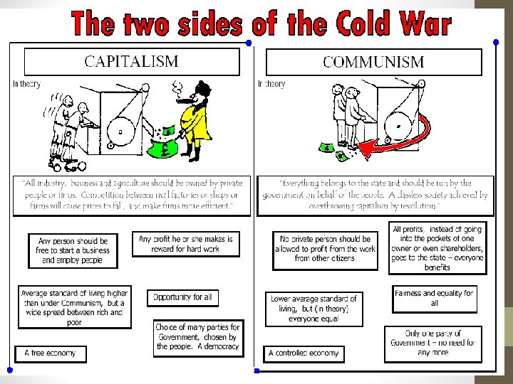 The ‘Marshall Plan’ • The Marshall Plan offered huge sums to enable the economies of Europe to rebuild after World War II, and, by generating prosperity, to reject the appeal of Communism. The Soviet Union (USSR) prevented Eastern European countries from receiving American money.