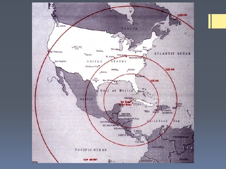 Nuclear Threat moves to Cuba § In 1959, Fidel Castro completed successful revolution in Cuba § Receives backing and support from the Soviets § Soviet Union helps support Cuban economy and eventually places nuclear missiles on Cuban soil § In April of 1961, an unsuccessful invasion at the Bay of Pigs, ordered by President Kennedy, ended with the killing or capture of all 1500 troops