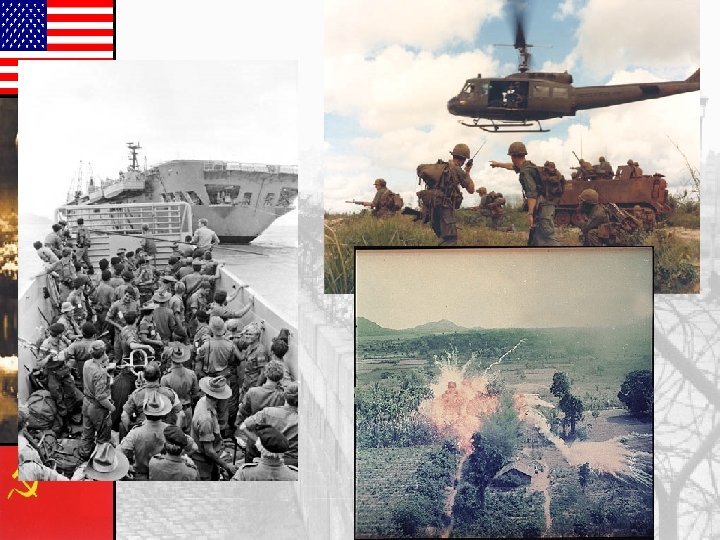 Vietnam War: US Involvement • The U. S. starts to send in troops to stop the spread of communism in South Vietnam and neighboring countries like Laos and Cambodia.