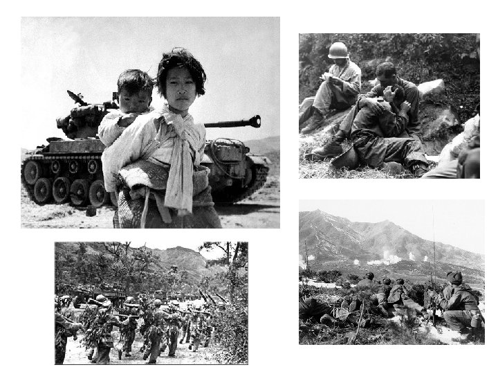 Germany all over again Republic of Korea • • • South Democratic Helped by America Headed by Syngman Rhee Capital in Seoul Democratic People’s Republic of Korea • • • North Communists Helped by Soviet Union Headed by Kim Il Sung Capital in Pyongyang