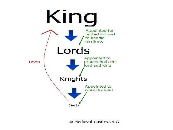 Everyone had a place; it was a very structured HIERARCHY! • • • Monarch (King and Queen) Powerful Lords (Dukes and Counts) Vassals Lower Vassals/Lords Knights Serfs = peasants bound to the land