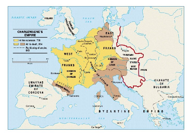 Ch. 8, Sec. 1: Charlemagne • Was crowned king of Roman Empire by Pope Leo III (approx. 800 C. E. ) • He tried to unify his lands and spread Christianity • Revived Latin learning • Widened the split between east and west • When he died, Europe was once again in chaos!