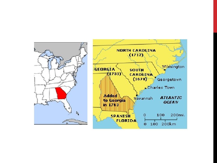 GEORGIA • Georgia was originally founded by James Oglethorpe in the 1730’s as a prison state and a buffer between the British settlements and Spanish Florida. • Oglethorpe wanted to reform the prison system by offering prisoners opportunities for redemption.