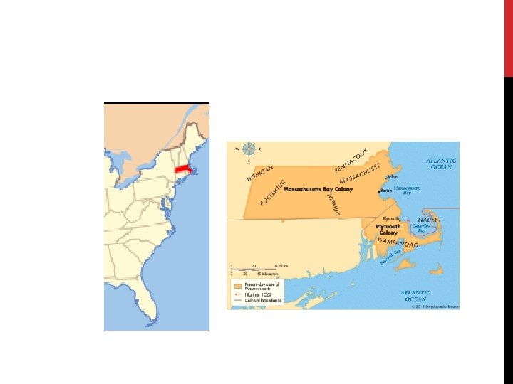 Massachusetts • Pilgrims founded Plymouth in 1620 and other Puritans founded Boston in 1630. • Massachusetts was a theocracy—religious beliefs served as law and religious leaders had the most authority