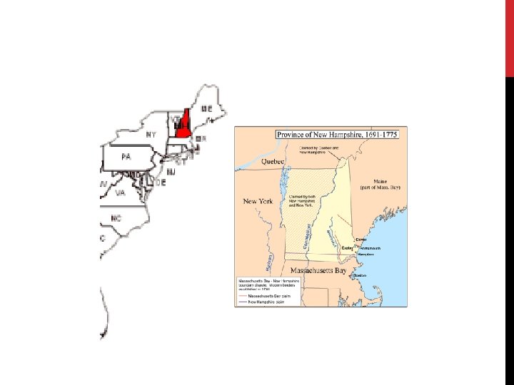 NEW ENGLAND COLONIES • New Hampshire • Massachusetts • Connecticut • Rhode Island