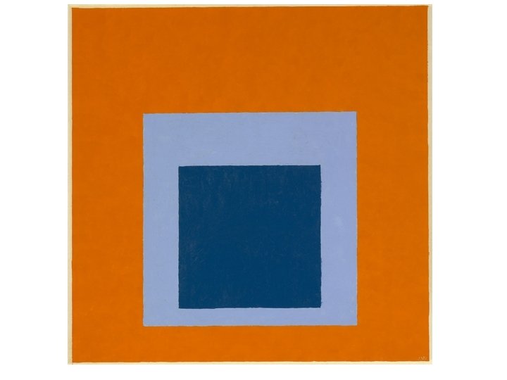 Intensity is the brightness or dullness of a color. A color can't be made brighter than the way the pigment comes to you in the paint tube. In this example, full strength orange on the left slowly has a little bit of blue (it's compliment added to it). This creates tones of orange. As you progress across the scale you reach neutral in the center because there is too much blue mixed with the orange and it has become a neutral. If you start on the right with the blue and slowly add a little orange you can see tones of blue until you reach the neutral in the center.