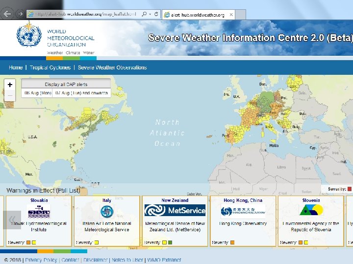 WMO Global Multi-hazard Alert System (GMAS) • Live Feed Widget developed through collaboration of PWS and CPA of WMO and Hong Kong Observatory (HKO) • You can see it at: https: //www. wmo. int/pages/index_ en. html#alertwidget