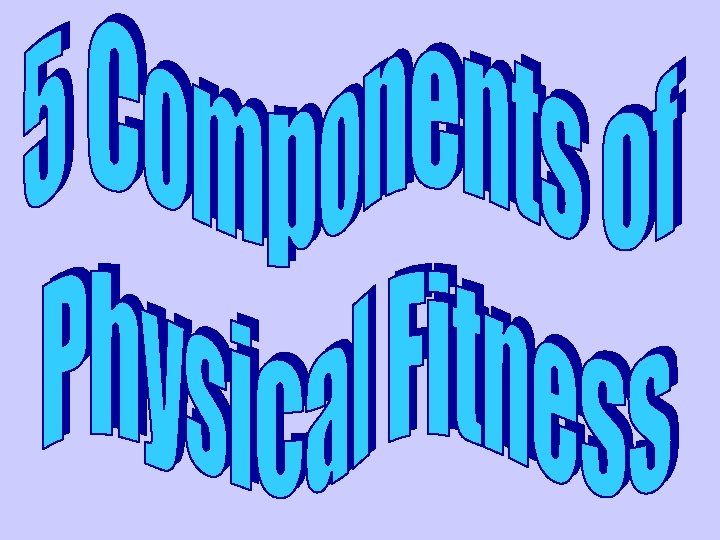 The Components of Physical Fitness are: • • • Cardiorespiratory Endurance Muscular Strength Muscular Endurance Flexibility Body Composition