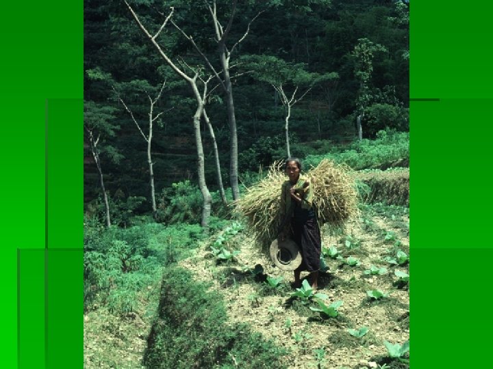 Popular Development and Environment ▪ Recognizes high “opportunity costs” associated with irreversible environmental damage ▪ Dealing with environmental problems requires solutions sensitive to local social and ecological conditions ▪ Society and nature relations are affected by variations in class, gender and ethnicity ▪ “Reproductive squeeze” forces peasants to intensify production in fragile environments
