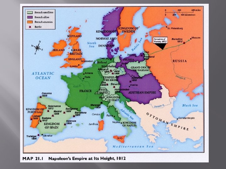 The Confederation of the Rhine § German states who allied with Napoleon after his defeat of the Austrians at Austerlitz (1806). § All German states except Austria and Prussia joined. § Confederation provided buffer against enemies on France's eastern borders. Also contributed troops to Napoleon’s armies. § After Napoleon's retreat from Russia (1813) many members changed sides in the war and the Confederation collapsed.