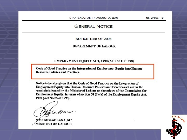 Employment Equity Act (Definitions) Clearly this questionnaire constitutes a “medical test”