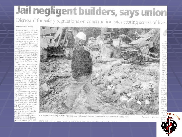 Preamble § Construction work is a dangerous business § Which calls for regulation & control so § SASOM & SASOHN are delighted to make any contribution to reduce the risks, and improve the way in which regulation is implemented.