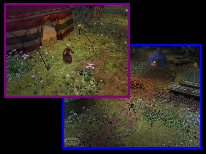 Constructing Worlds (cont. ) l Maps broken into regions – – l Editor not continuous; edit in chunks that fit in RAM “Stitch” regions together, game sees as continuous Allows terrain that “bends space” – – – Convenient for designers (easier to make things fit) Fading = interpenetrating terrain invisible to player Goofy possibilities: infinite desert, moebius strips