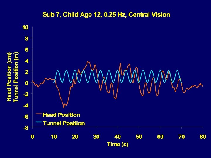 Procedure • 6 trials of standing quietly while viewing: • Each trial was 80 seconds long • 10 sec no tunnel movement • 60 sec tunnel movement • 10 sec no tunnel movement