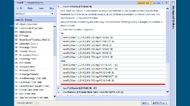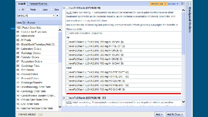 Order Set Development ● After discussing with the Director of Pharmacy, we brainstormed to develop an order set ● An order set was developed to switch from IV to PO automatically after the first dose