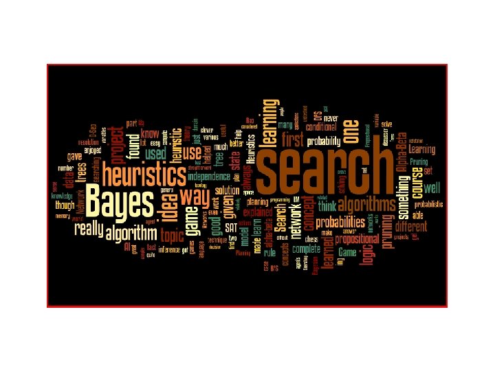 Representation Mechanisms: Logic (propositional; first order) Probabilistic logic Learning the models How the course topics stack up… Search Blind, Informed SAT; Planning Inference Logical resolution Bayesian inference