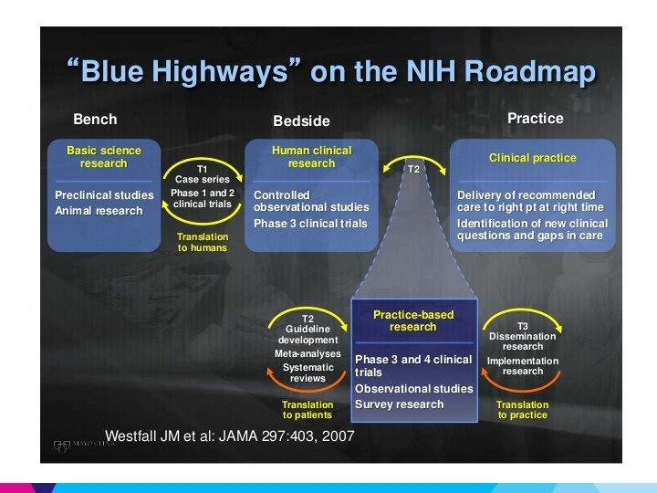 CTSA Program • Establish novel initiatives which focus on efforts that are essential to accelerate basic research discoveries and speed translation of these discoveries into clinical practice as well as explicitly address roadblocks that slow the pace of medical research in improving the health and well being of society