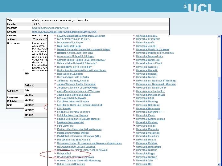 Participation: minimum requirements • OAI set to identify open access research theses • OAI Dublin Core metadata • Essential: author, title, date (of award), identifier (http, ideally a link to local ‘splash page’) • Recommended: awarding institution (preferably publisher) • Desirable: abstract, subjects, language
