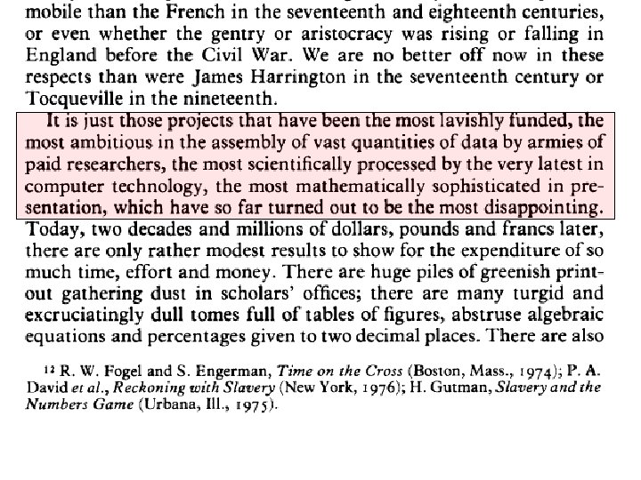 Tony Judt, “A Clown in Regal Purple” History Workshop Journal 7(1979), 66 -94 “. . . social history is suffering a severe case of pollution. The subject has become a gathering place for the unscholarly, for historians bereft of ideas and subtlety. . . Complete epistemological bankruptcy. . . ludicrous. . . fundamentally unscholarly. . . mediocrity. . twaddle. . . stupid, or historically illiterate. . . shoddy work. . . the slow strangulation of social history”