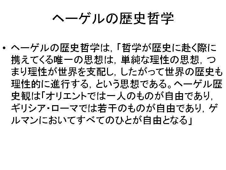 Orientalism by Edward Said ② • People who supported the Hegelian progressive view of history believed that history is not meaningless chance, but a rational process and transition from the ancient Oriental world through classical Greece and Rome and the Middle Ages to the modern German world. • These people are supporters of a Westerncentered linear theory of history and culture based on a developmental dialectic. This theory led to the Western-centered view of non-Western cultures as inferior to Western cultures. This view was to be criticized by Edward Said in his work on Orientalism in the late 20 th century. (Nakamura, 1998)