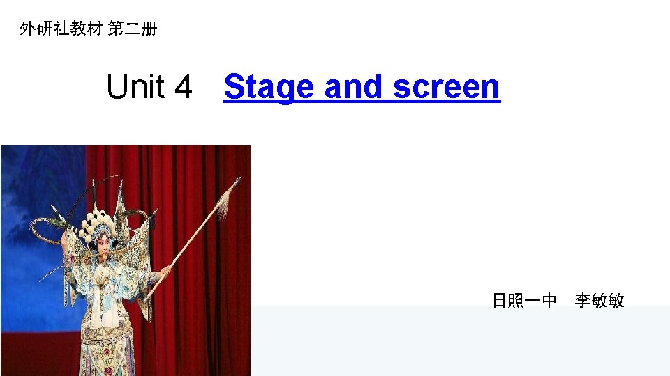 We are to : 1. get a good understanding of the text and learn some useful expressions related to stage play. 2. improve reading skills--skimming for main ideas and scanning for detailed information, and speaking skills as well. 3. learn to appreciate the cultural heritage --- Peking Opera and make a comparison between western dramas and Chinese ones. 4. take pride in traditional Chinese culture --- Peking Opera.