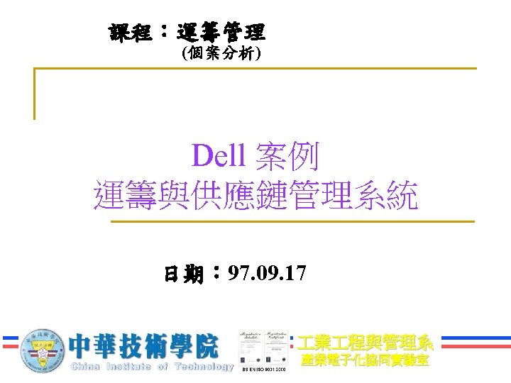 A Global Partner We specialize in helping businesses and institutions like you meet their information technology needs around the world International 31% 80% Business & Institution North America 20% Consumer 68 % Americas Revenue Global Sales & Support Worldwide Revenue Global Manufacturing n Dell offices in 34 countries n 50, 000 contracted in 170 countries n 6, 700 Dell service personnel N. America - Austin, TX - Nashville, TN S. America - Alvorada, Brazil Europe - Limerick, Ireland AP/Japan - Penang, Malaysia - Xiamen, China 業 程與管理系 產業電子化協同實驗室 15