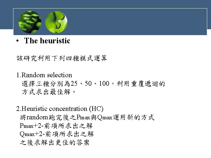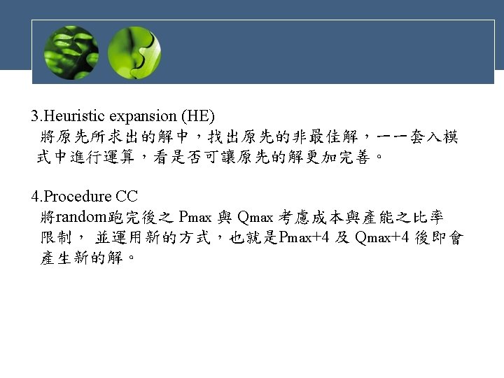 The reverse distribution model 3/5 • Cijk––Total variable cost of transporting a single unit of recalled product from origination site i through collection site j and onto refurbishing site k. • Fj––Cost of opening a collection site j. 成本 • Gk––Cost of opening a refurbishing site k. • ai––Number of hazardous products residing at origination site i. • Bj––Maximum capacity of collection site j. 容量 • Dk––Maximum capacity of refurbishing facility k. • Pmin––Minimum number of collection sites to open and operate. • Pmax––Maximum number of collection sites to open and operate. 數量 • Qmin––Minimum number of refurbishing facilities to operate. • Qmax––Maximum number of refurbishing facilities to operate.
