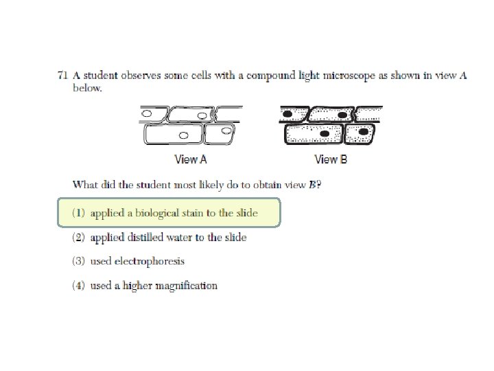 The diagram here shows a person working with a compound light microscope. Which of the objective What is the total magnification A lenses is probably the of the highest power lens on 4 x (finder) lens? our microscopes? B C 400 X