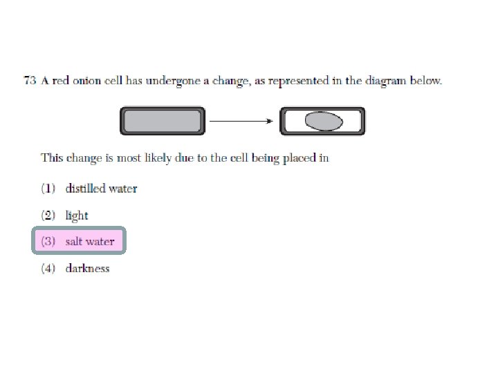 Starch turns blue black in the presence of a starch indicator. Dialysis tubing tied at both ends and containing starch solution is placed in a beaker of water. Yellowish brown starch indicator is then added to the water. What will the solutions in the beaker and the tubing look like after 20 minutes? This laboratory would likelywill be used to demonstrate the process of (1) The indicatorsetup solution in most the beaker be blue black and the starch solution in the tubing will not change color. (1) diffusion (2) The starch solution in the tubing will be blue black and the transport indicator solution in the beaker (2) willactive not change color. (3) Neither the indicator solution nor (3) thereplication starch solution will be blue black. (4) cellular respiration (4) Both the indicator solution and the starch solution will be blue black.