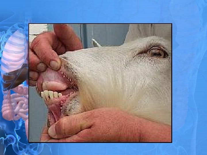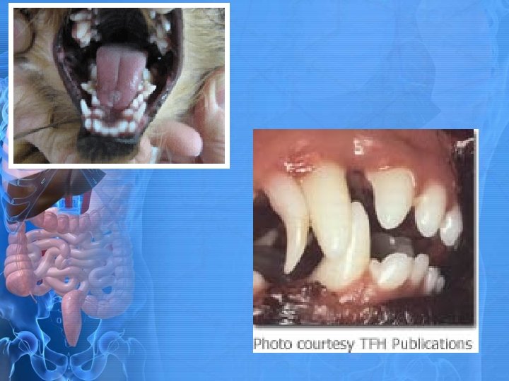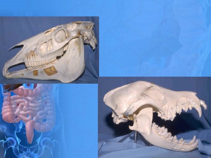 Teeth continued • The fourth premolar is also referred to as the carnassial tooth. • If this tooth abscesses may cause drainage through the skin under the eye. • Because of root system and length of roots, removal is hard work.