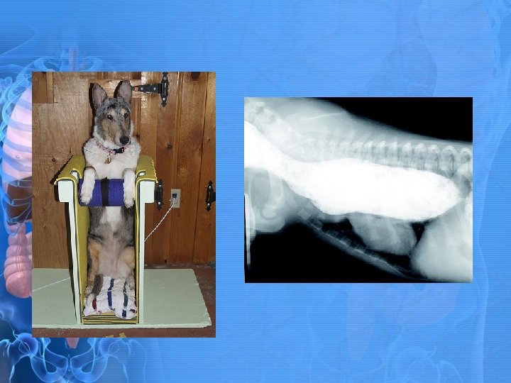Megaesophagus • When esophagus loses muscle tone. • Food accumulates in the esophagus instead of being transported to stomach. • How do we treat? • Feed liquid based diet • Feed on an elevated surface • Holding animal up and allowing gravity to pull food down to stomach. • Can lead to aspiration pneumonia.