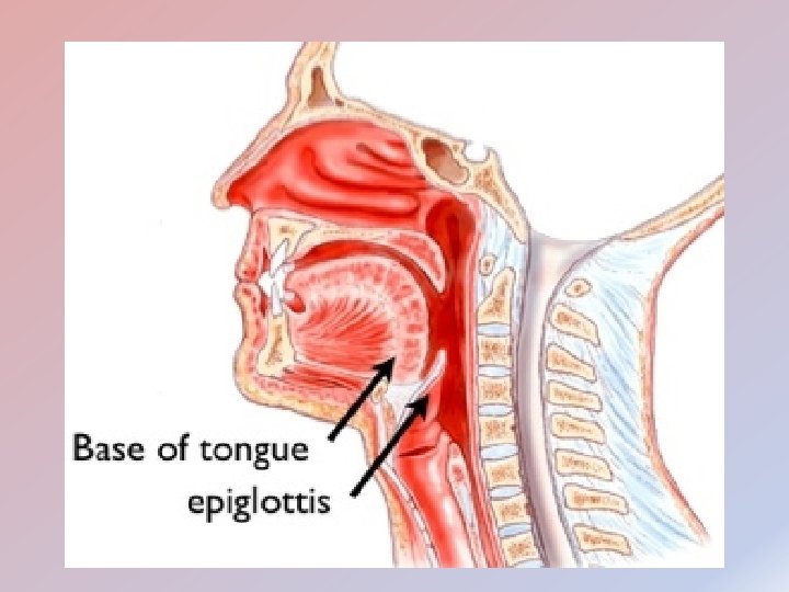 - the tongue further breaks down the food by swishing it around in the mouth - when you are done chewing, you swallow and your tongue pushes the food into the esophagus - the action of swallowing causes the epiglottis to cover the opening to the trachea, preventing food from entering the lungs