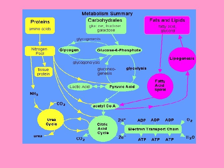 Carbohydrates, Proteins, Lipids § The process of digestion produces glucose, amino acids, glycerol, and fatty acids. § The energy in glucose is used to produce ATP. (adenosine triphosphate) § The body uses amino acids to construct proteins. § Glycerol and fatty acids can be converted to pyruvate and Acetyl Co. A and then enter cellular respiration.