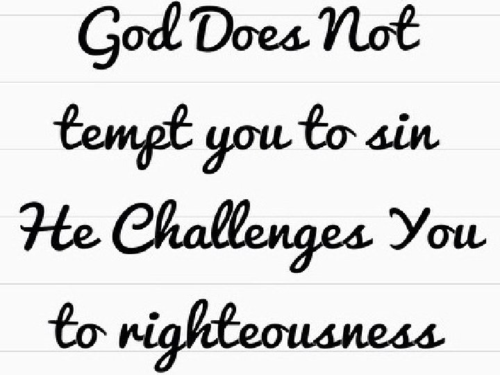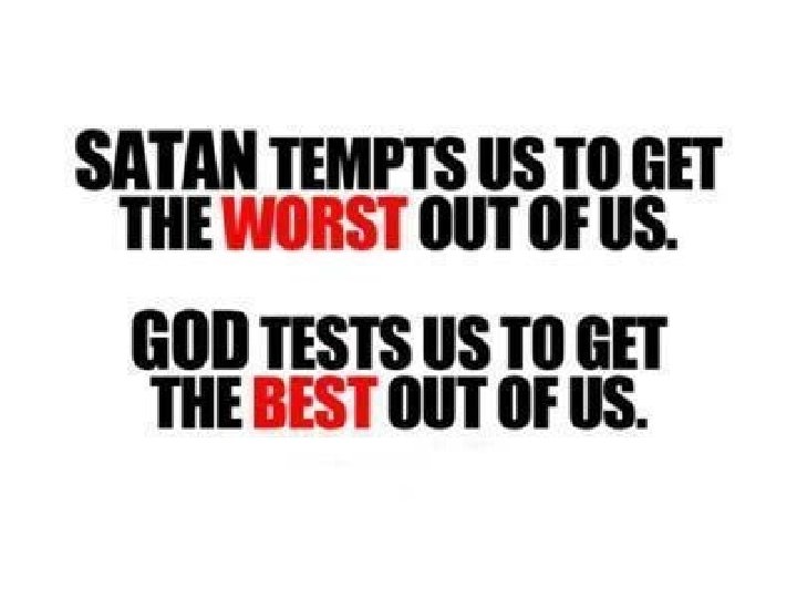 1. 1 Temptation and Testing † ‘Tempt’ comes from the Greek (‘peirazein’) which could also mean ‘testing’. † Purpose of ‘tempt’ is to ‘sin’ and the purpose of ‘test’ is ‘righteousness’ (Read James 1: 3, 12).