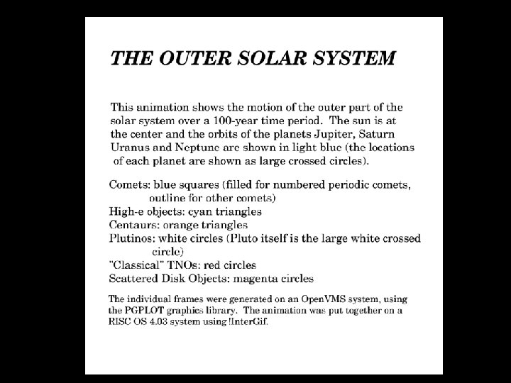 Should we call Pluto a planet? • I’m neutral. But some things to consider… • Is Pluto the first of many Kuiper Belt “ice dwarf” planets discovered? • Is larger Xena the 10 th planet? • Are slightly smaller Sedna, Quaoar planets? • Ceres was called a planet for ~50 years, then “demoted” to asteroid (a precedent) • Will we have only 8 planets, or hundreds of them? • Is this a problem? Seems like progress to me. • The IAU is working on it…in the meanwhile, it is a harmless and healthy “non-controversy”