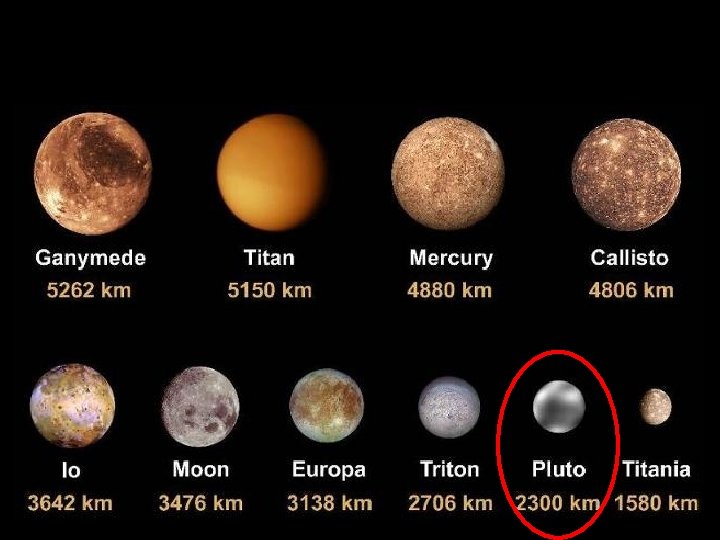Relative sizes of Pluto, Charon, and the two new moons (P 1 and P 2) P 1 P 2 2300 km 1200 km ~100 km