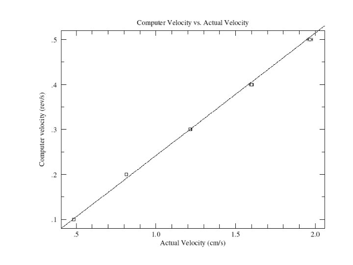Procedure • Measured velocity of reflector for various computer speeds (error in time measurement and distance measurement) • Calculated ratio of actual velocity to computer velocity