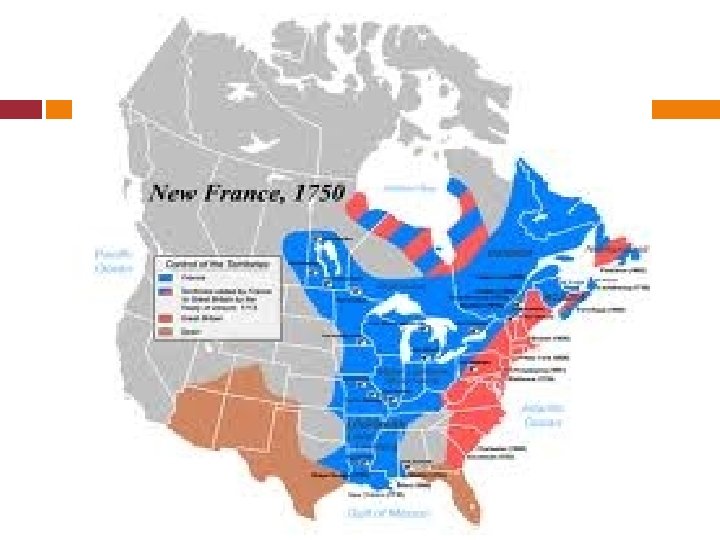 New France Fans Out Reasons France Expands into Frontier: Economic Resource: Beaver (A lot in Canada) Jesuit Missionaries Very concerned about rescuing souls of Indians (sought souls for empire) Empire Seekers Many wanted empire for France and to stop other European nations. Antonine Cadillac founded Detroit to protect Ohio River Valley from English ORV=KEY TO THE WEST Louisiana founded by Robert de La Salle to stop Spanish from getting to Gulf of Mexico French controlled mouth of Mississippi (port/trade)