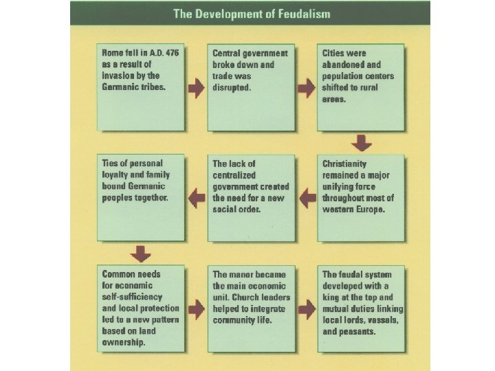 Why Feudalism? UAttacks from outsiders UWeakness of central governments UGerman rulers gave landed estates to important nobles in return for military assistance