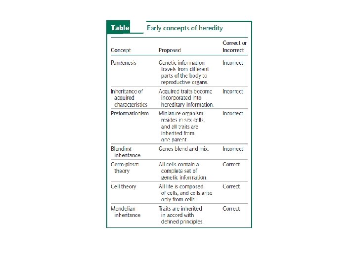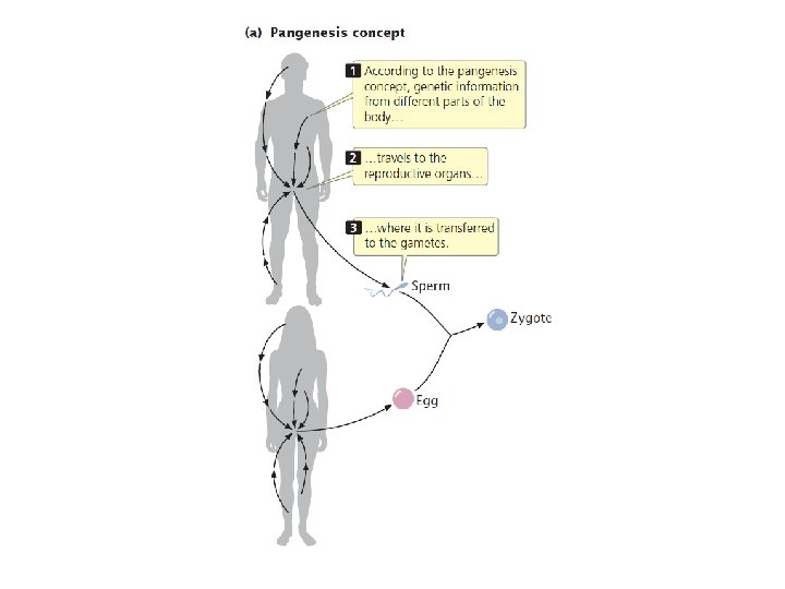 § The ancient Greeks gave careful consideration to human reproduction and heredity. § Greek philosophers develop the concept of pangenesis, in which specific particles, later called gemmules, carry information from various parts of the body to the reproductive organs, from which they are passed to the embryo at the moment of conception. § Although incorrect, the concept of pangenesis was highly influential and persisted until the late 1800 s.