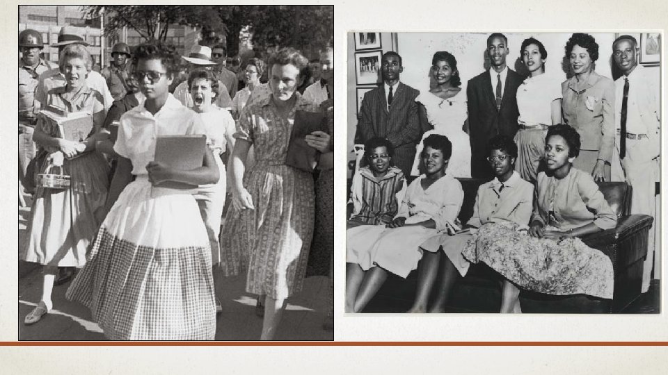LITTLE ROCK 9 • 3 week standoff • On April 24, Eisenhower places AR National Guard under Federal Control, sends in US army. • Eisenhower justifies action based on upholding federal authority and enforcing the law. • Eisenhower becomes 1 st president since Reconstruction to use Federal troops to protect blacks, affirming power of Federal Government https: //youtu. be/75 dhe 5 Zsy 8 k